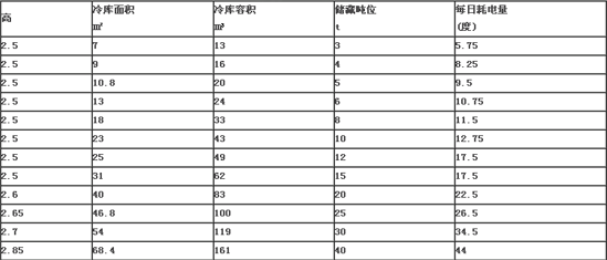 30平方冷庫3米高的情況下,大概可以存放15噸左右的果蔬,不同的存放方式以及冷庫規(guī)格的設(shè)計(jì)都會(huì)影響到冷庫的實(shí)際利用容積,噸位是按照體積*密度計(jì)算的一般來說按照5立方存放一噸來計(jì)算,但是果蔬的實(shí)際重量與體積大小對(duì)冷庫的實(shí)際容量是有影響的。為了方便客戶了解不同尺寸的冷庫可以存放多少產(chǎn)品,下面雪藝制冷小編提供了一份關(guān)于冷庫貯藏噸位與耗電量的表格(僅供參考)