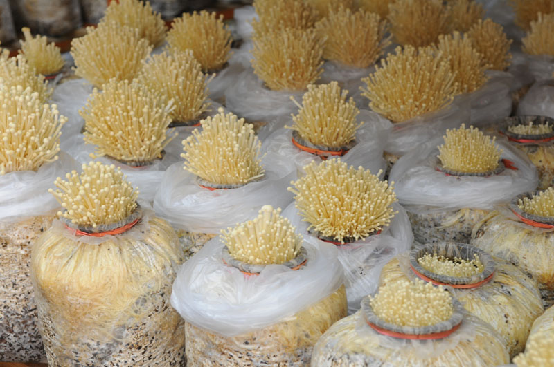 2.殺蟲,這一步跟傳統(tǒng)金針菇種植一樣,利用80%敵敵畏乳油500~1000倍液自上而下的進行空中噴霧,藥量2~4毫升每立方米 ,再利用浸泡過藥液的布條或其他懸掛物放置在通風(fēng)口和門口處,殺滅庫內(nèi)菇蠅、蚊子、螨類等。